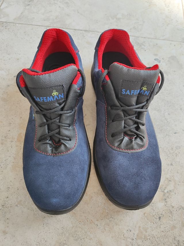 Dettagli del prodottoScarpe antinfortunistiche Safeman, numero 42, nuove. Sono di colore blu scuro con dettagli rossi.