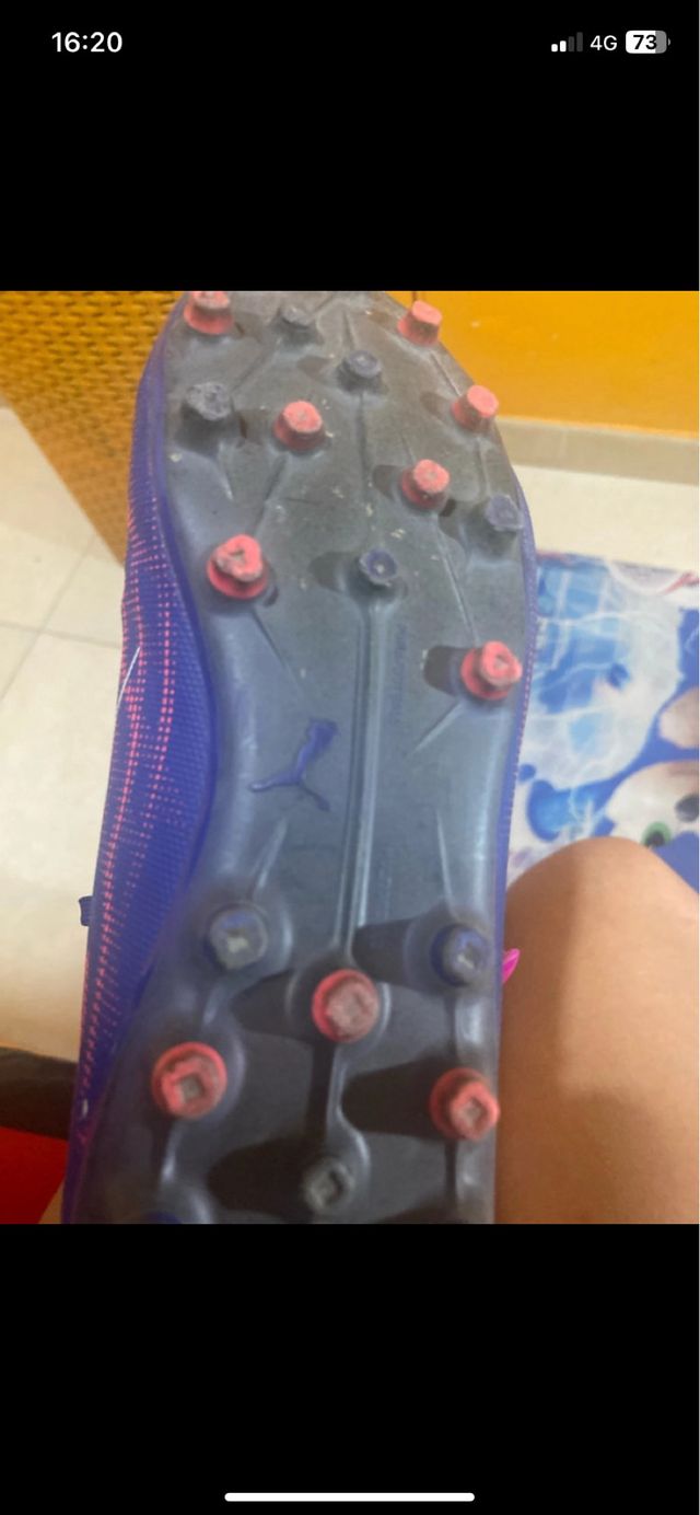 Scarpe da calcio Puma con tacchetti. - Colore blu e rosa. - Logo Puma sul lato.