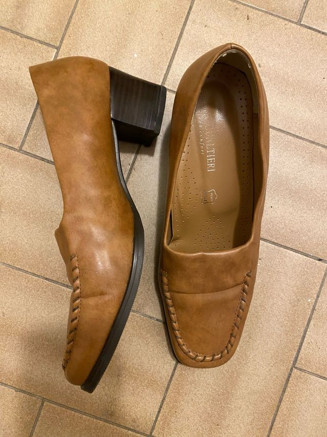 Scarpe donna vera pelle cammello tacco 37