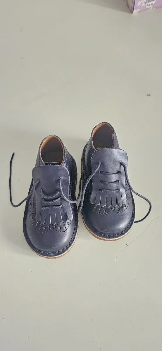 Dettagli del prodottoEleganti scarpe da bambina in pelle blu, numero 19. Utilizzate una volta. Perfette per occasioni speciali.