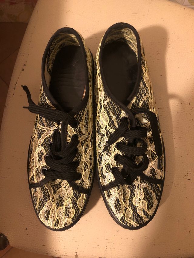 Scarpe ginnastica pizzo nero giallo