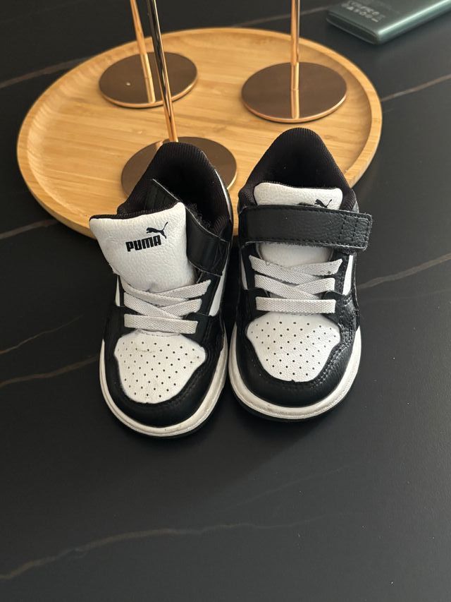 Scarpe da ginnastica Puma per bambino.taglia 22 cm - Chiusura con velcro e lacci. - Logo Puma sul lato e sulla linguetta. - Design bicolore nero e bianco.