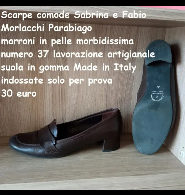 Eleganti Scarpe comode Sabrina e Fabio Morlacchi Parabiago, numero 37, marroni in pelle morbidissima. Lavorazione artigianale, suola in gomma, Made in Italy, indossate solo per prova, ottima vestibilità. Vendo per inutilizzo.