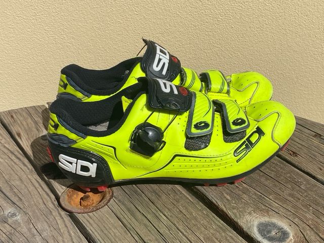 Scarpe da ciclismo mtb Sidi Trace da uomo, numero 40. - Colore giallo fluo. - Chiusura con rotore e velcro. - Suola da mtb senza tacchetti.