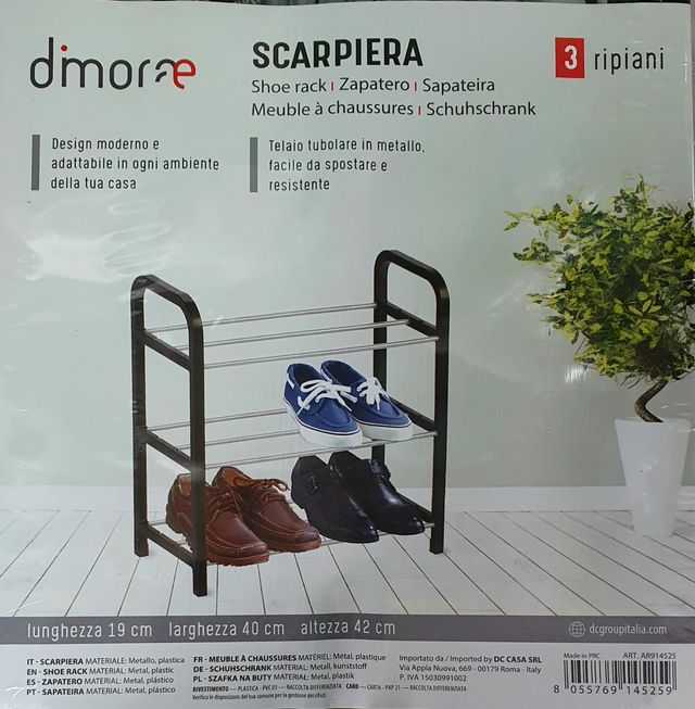 Dettagli del prodottoMobiletto scarpiera con 3 ripiani, Nuovo nella sua confezione originale, con telaio tubolare in metallo, facile da assemblare, pratico per il posizionamento di libri, scarpe, piccole piante, ecc ecc.