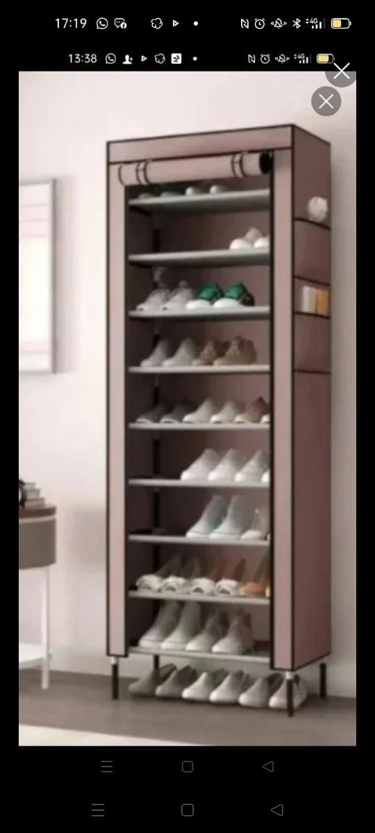 Scarpiera in tessuto beige/grigio