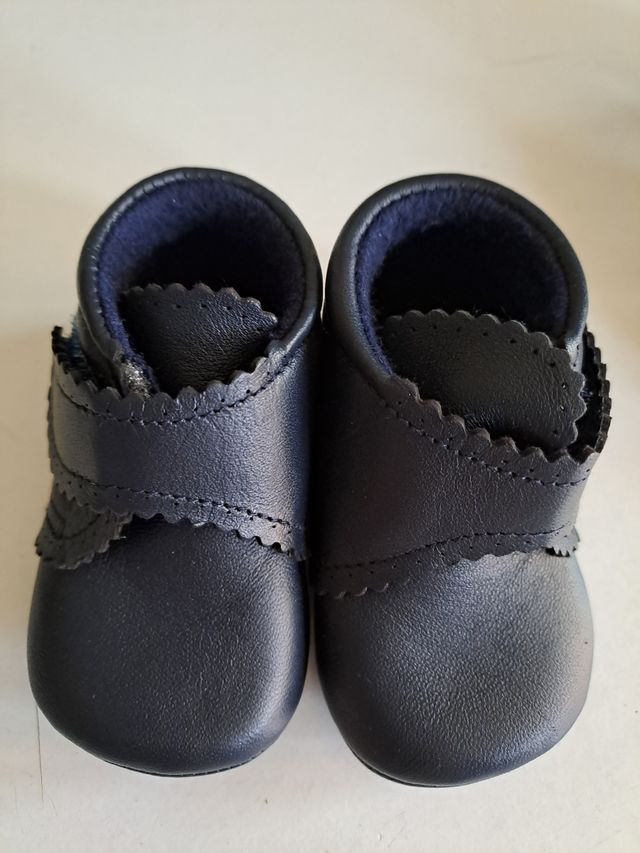 Bellissime scarpine per neonato, numero 17. - Colore blu scuro. - Con chiusura a strappo. - Interno foderato.