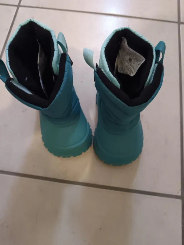 Scarponcini da neve per bambino, ideali per proteggere dal freddo e dall'umidità. - Colore turchese. - Materiale imbottito. - Suola in gomma.