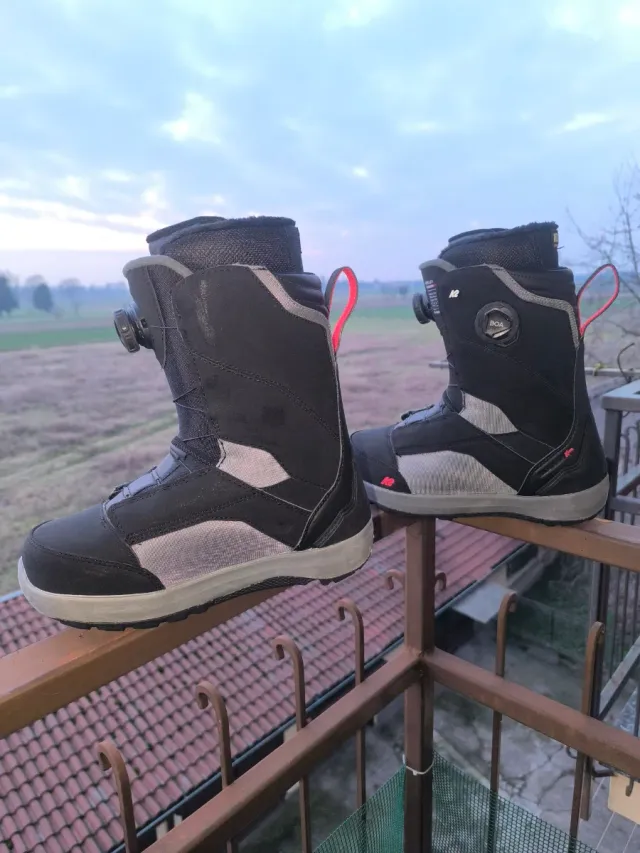 Dettagli del prodottoUsati solo una settimana, in perfette condizioni con segni normali di uso, doppio sistema boa, sistema di aggancio rapido paragonabile a step on Burton ma più performante, pagati 700€
