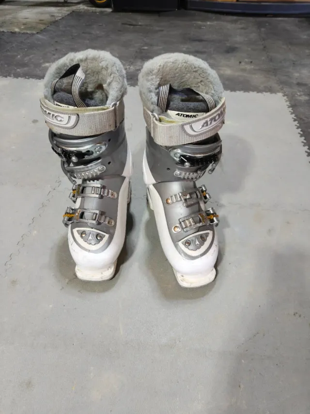 Dettagli del prodottoScarponi da sci Atomic, adatti sia a donne che a bambini. Presentano un rivestimento interno in pelliccia sintetica per un maggiore comfort.