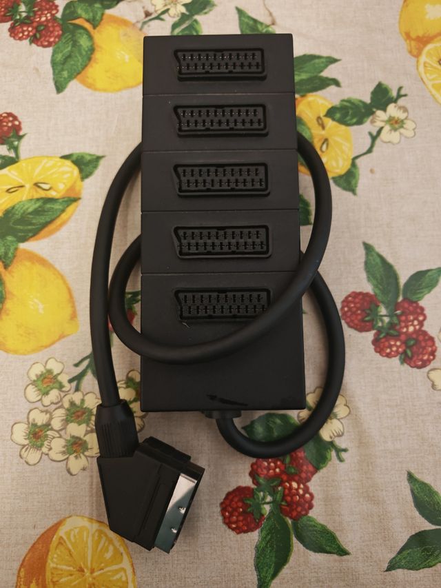 Vendo cavetteria varia come da foto tra cui splitter Scart, in buone condizioni. Prezzo 2€ ciascuno - 3 o 5 uscite Scart - Cavo Scart incluso