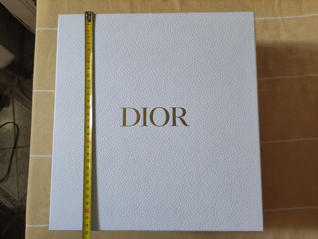 Dettagli del prodottoScatola Dior con grana come finta pelle, in cartone. All'interno è presente, come da foto, la carta velina e nastro. Ha l' apertura con il coperchio. Perfetta come portagioie o per contenere regali, foto e ricordi. Misure 33 cm x 31 cm x h 12 cm Misure del prodotto