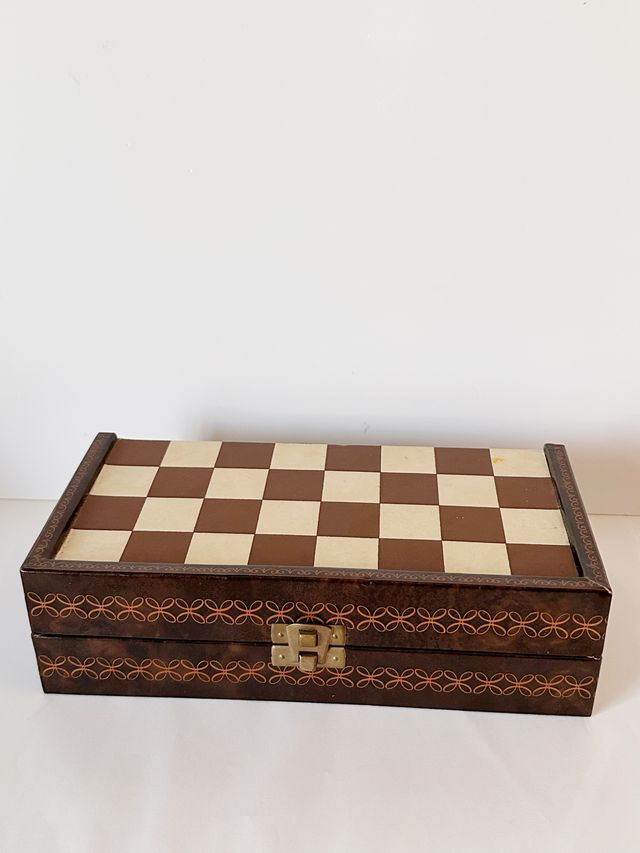 Dettagli del prodottoScatola con scacchiera risalente attorno 1960/1970. L'interno è rivestito in tessuto. Piccoli segni di usura, considerata l'età dell'oggetto, ma questi non ne compromettono l'utilizzo. Misura: 26x13 cm