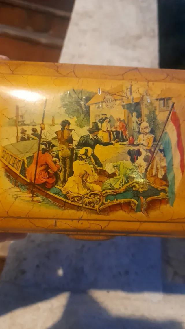 Dettagli del prodottoScatola di latta vintage all'interno 2 vecchi segna libri e stampe su carta comprese nella scatola.