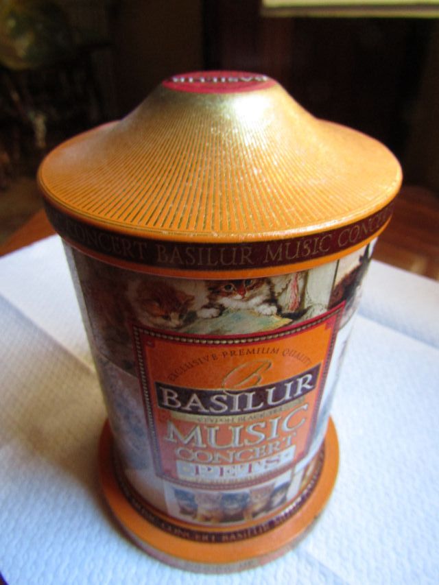 Scatola di latta vuota, conteneva the alla frutta Basilur