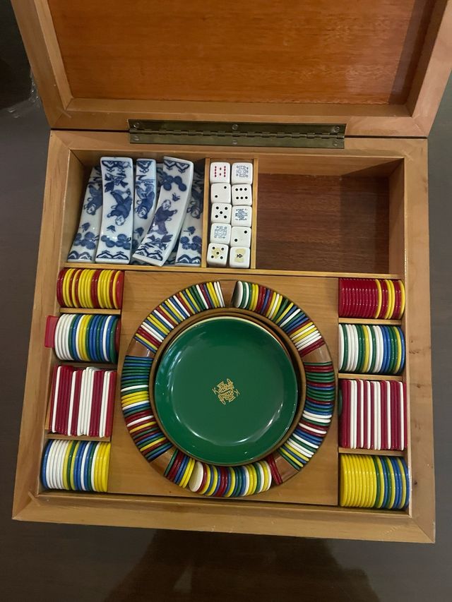 Dettagli del prodottoElegante scatola in legno per giochi di carte e fiches.