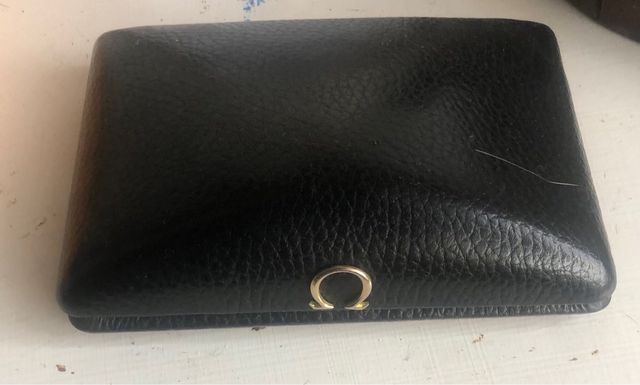 Elegante scatola porta orologio Omega in pelle nera. - Materiale: Pelle - Colore: Nero - Logo Omega dorato sul fronte
