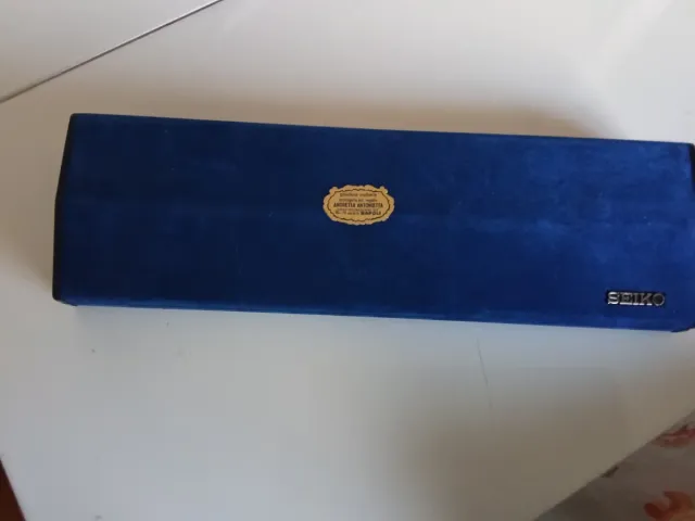 Dettagli del prodottoElegante scatola vintage per orologi Seiko, ideale per conservare o esporre il tuo prezioso orologio.
