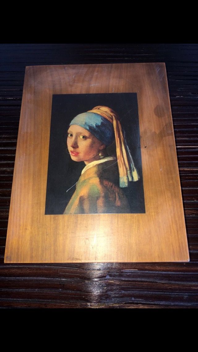 Dettagli del prodottoScatola Vintage portaoggetti su cui è raffigurata La Ragazza con L’orecchino di Perla. Ha diverse imperfezioni dovute al trascorrere del tempo. Le misure in foto .