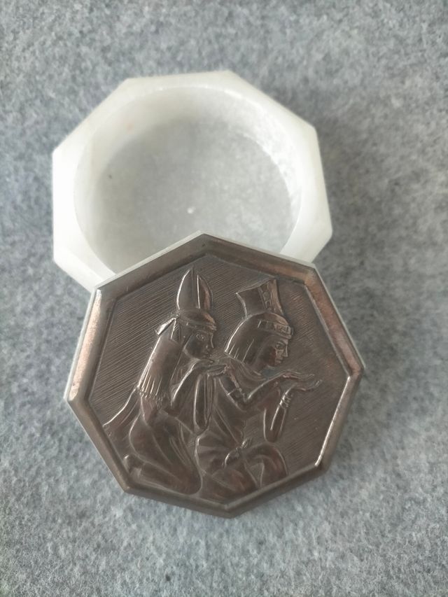 Scatola Egizia forma ottagonale con coperchio argento