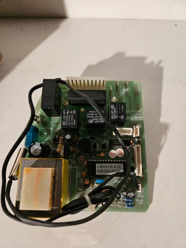 - Componenti visibili: Trasformatore, relè JQC-3FF, condensatori, resistori, circuito integrato.