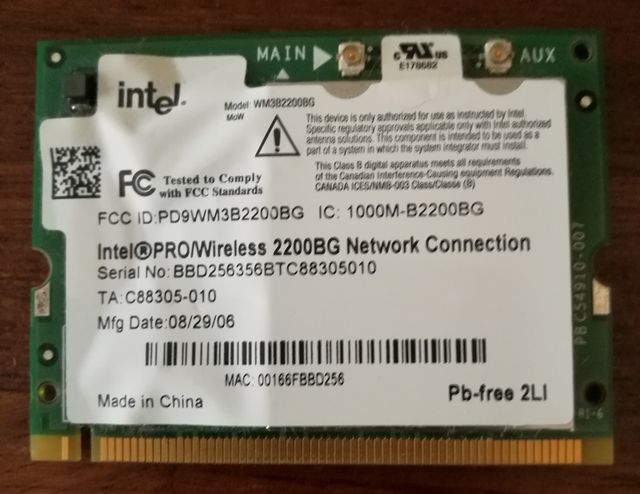 Scheda Intel pro/wirelees 2200BG network Connection smontata dal notebook.