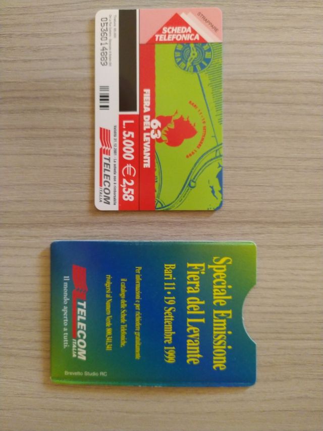 Dettagli del prodottoScheda telefonica emessa da Telecom Italia in occasione della Fiera del Levante di Bari 1999. Con cartoncino porta scheda, mai usata. Tiratura 65mila pezzi. Indicazione in lire e in euro del valore