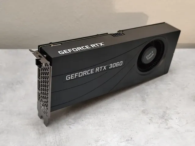 Scheda video NVIDIA GeForce RTX 3060. - Design compatto e moderno. - Ventola singola per il raffreddamento. - Logo Don't Touch sulla ventola.
