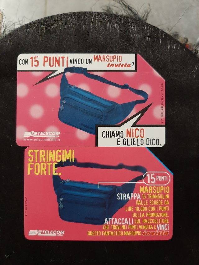Schede telefoniche Telecom. La 10 Vince Marsupio Invicta. Usate. Tiratura 1.000.000. Vendibili anche separatamente