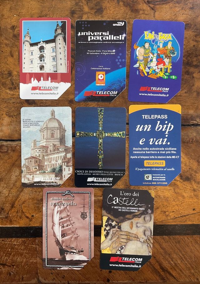 Lotto di 8 Schede telefoniche Telecom Anni: 2000 Taglio: 5000 lire Usate, perfette condizioni Telecom Italia Titoli: Pini Up, il telefono e il cinema