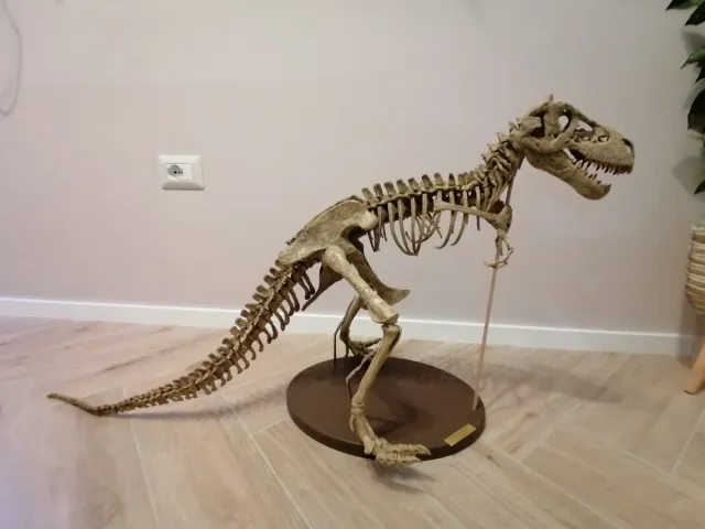 Dettagli del prodottoReplica dello scheletro di un Tyrannosaurus Rex, un dinosauro iconico. Non si regge autonomamente in quanto non è mai stato incollato.