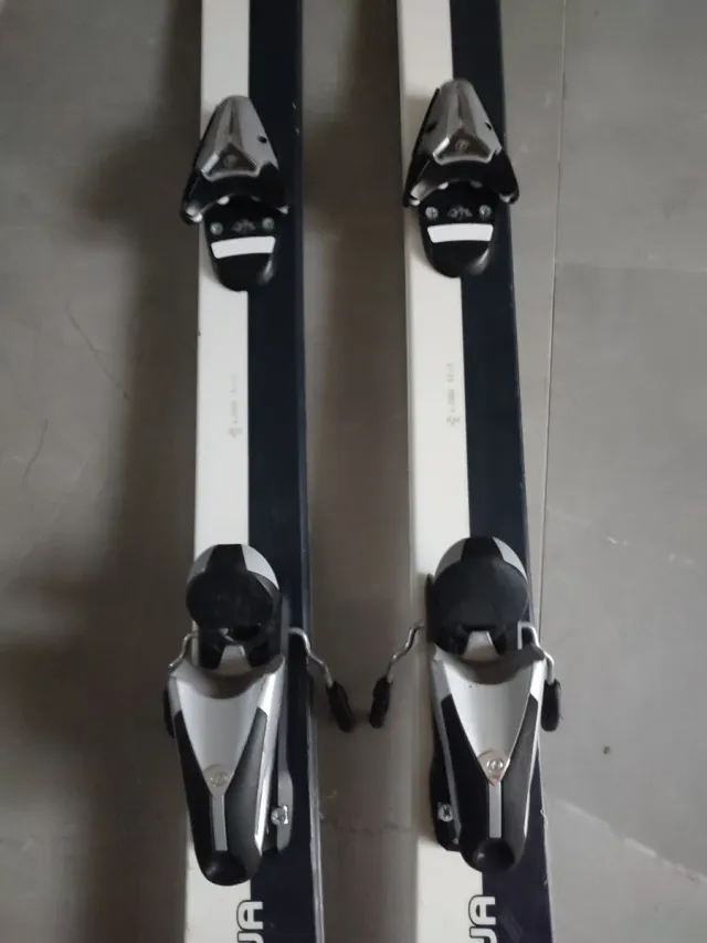 Coppia di sci corti con attacchi. Altezza 1 metro e 20 - Attacchi inclusi.