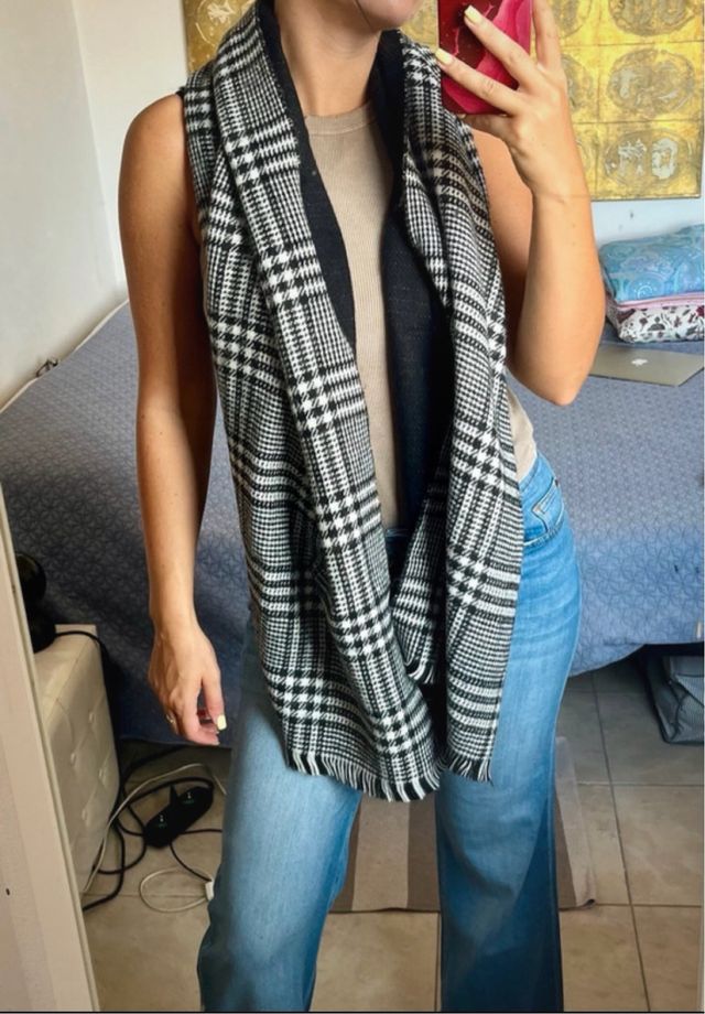 Sciarpa a quadri donna nera e bianca check tartan