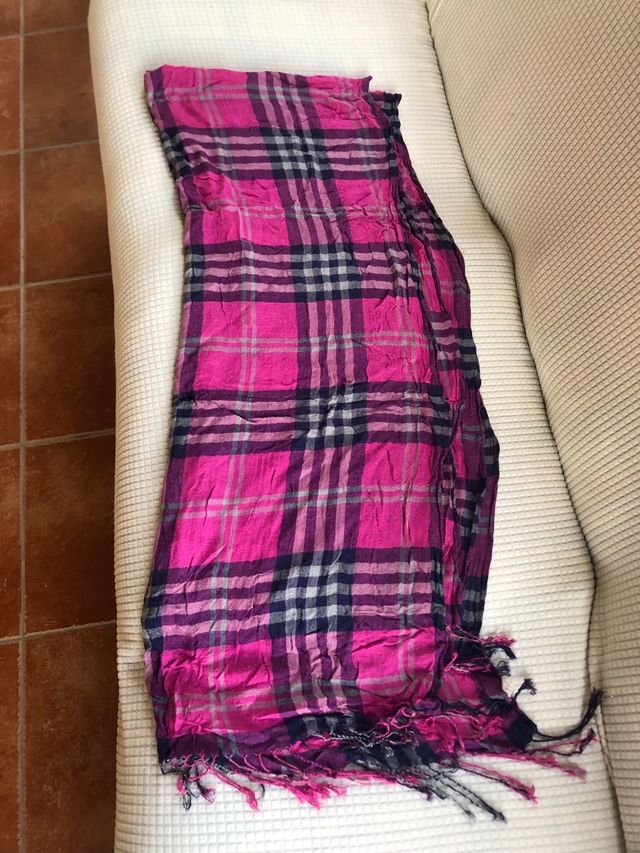 Sciarpa a quadri fucsia e viola