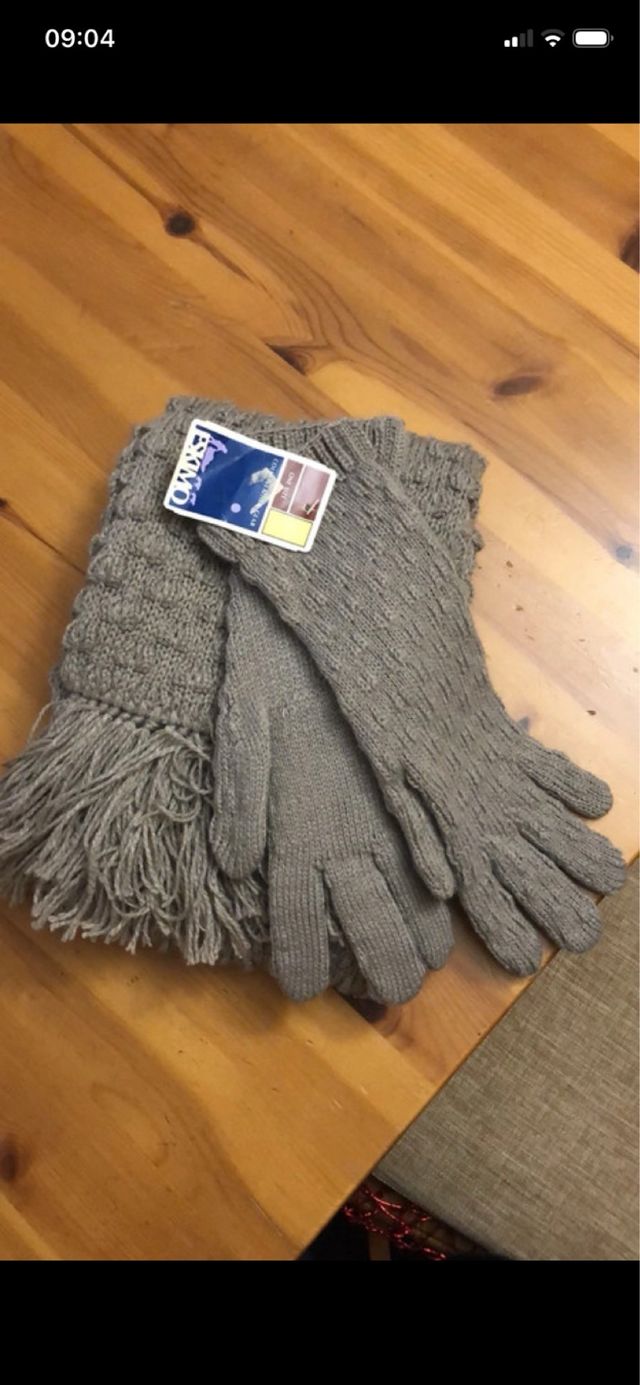 Sciarpa e guanti grigi in lana