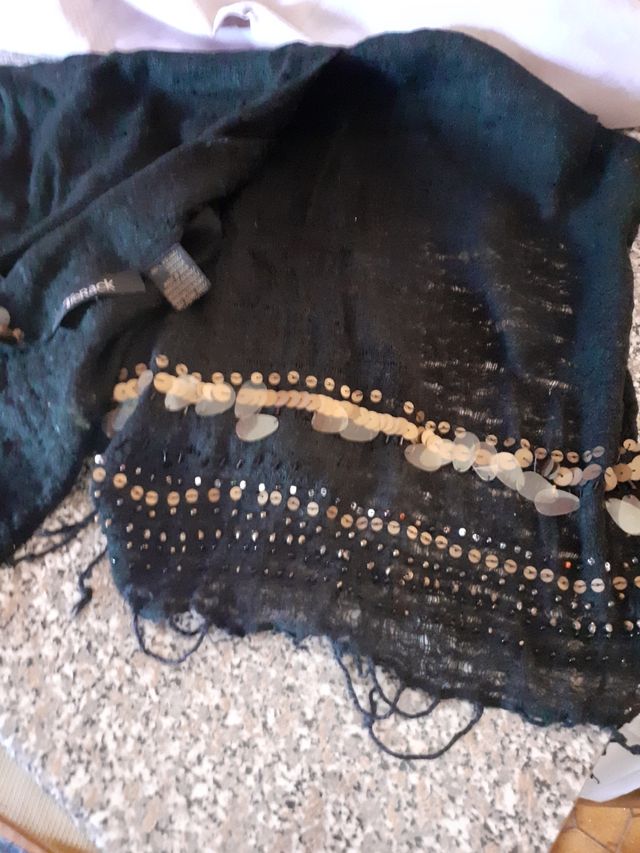 sciarpa donna, nera in viscosa made in India, in buone condizioni, con perline e applicazioni , piccola frangia