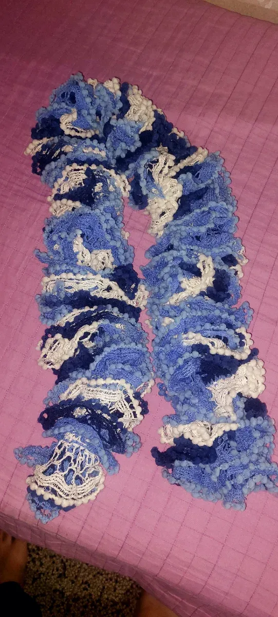 Sciarpa fatta a mano blu e bianca