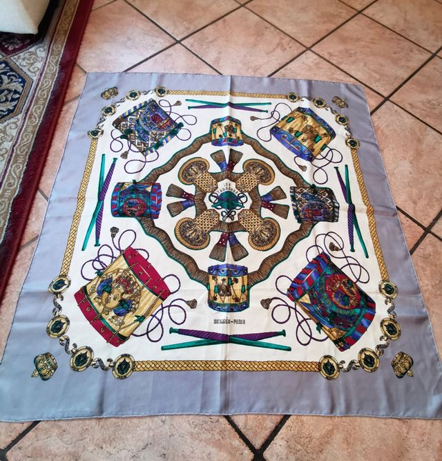 Sciarpa Foulard Hermes Seta Les Tambours 1989