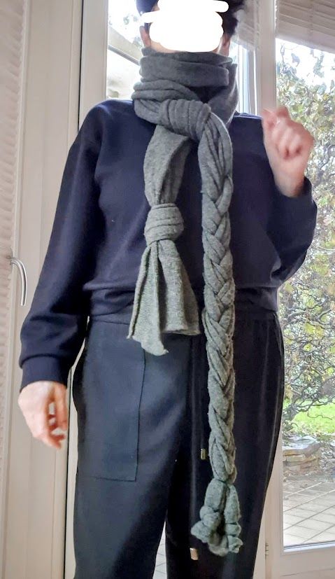 Sciarpa in lana grigia con treccia