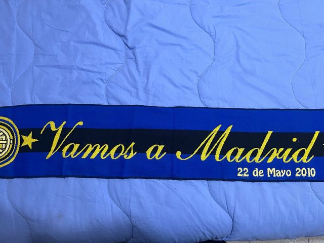 Dettagli del prodottoSciarpa celebrativa dell'Inter con la scritta Vamos a Madrid e la data 22 de Mayo 2010.