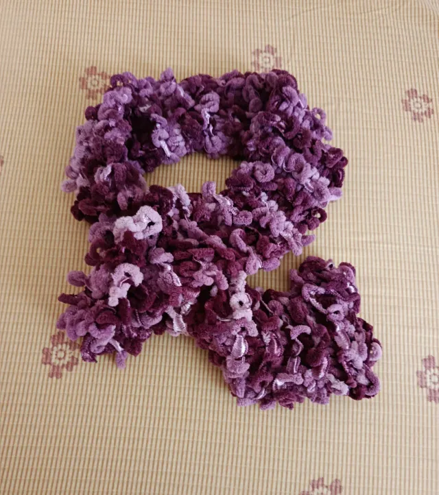 Sciarpa scaldacollo in lana e raso lavorata a mano