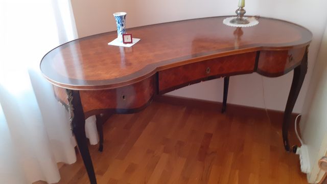 Scrittoio antico "a fagiolo", legno intarsiato, stile impero. Non spedisco, ritiro a carico dell'acquirente in Torino centro