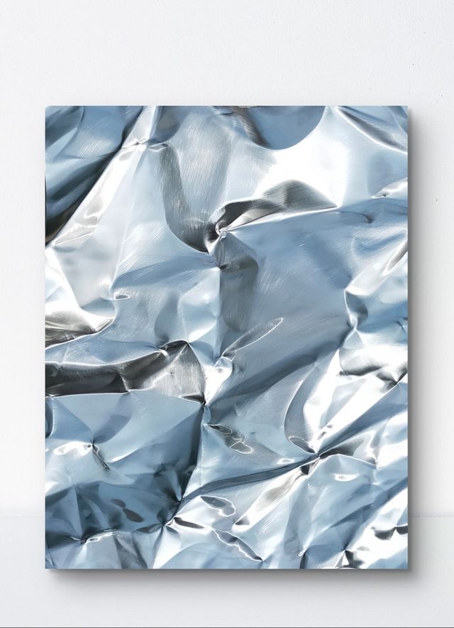 Scultura moderna da appendere, con un design unico e d'impatto. - Materiale: Metallo lucido - Colore: Argento -opaco. Misure cm 39 x48