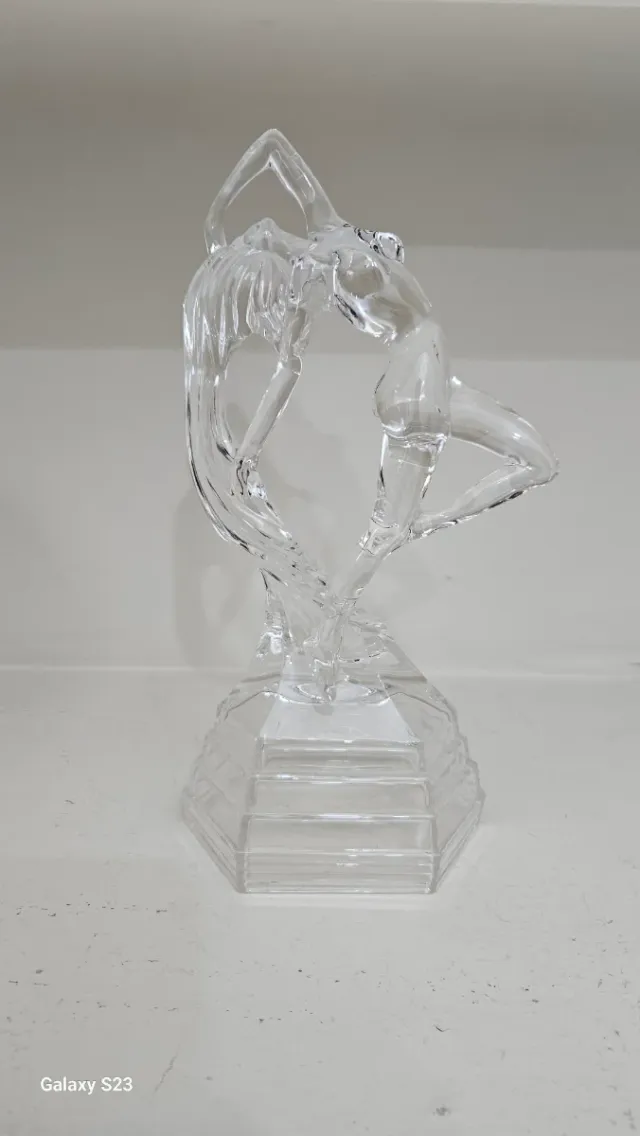 Dettagli del prodottoElegante scultura vintage in cristallo, con uno stile che richiama l'Art Déco. Rappresenta due figure danzanti.