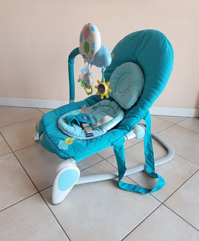 Dettagli del prodottoSdraietta dondolo Chicco, ideale per i più piccoli. Il colore principale è un vivace turchese.