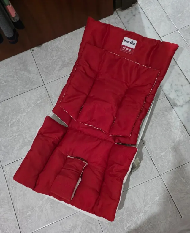 Sdraietta Inglesina di colore rosso, con imbottitura morbida e confortevole con schienale regolabile. - Rivestimento imbottito. - Design ergonomico.
