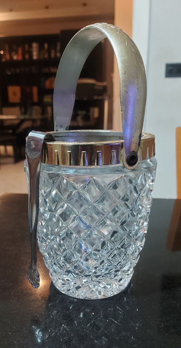 Secchiello Ghiaccio Con Pinza Anni 70 Vetro Cristallo