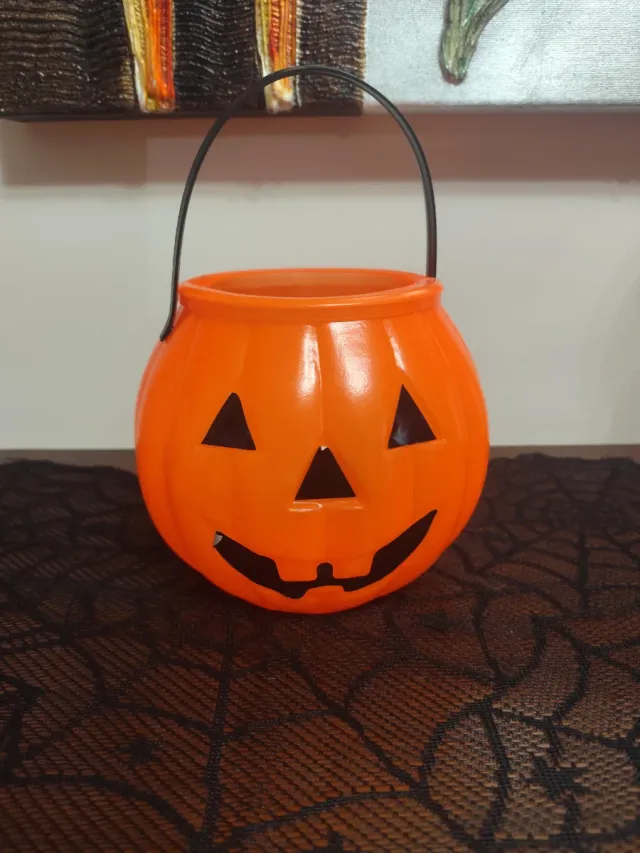 Dettagli del prodottoClassico secchiello a forma di zucca per la festa di Halloween. Perfetto per raccogliere caramelle.