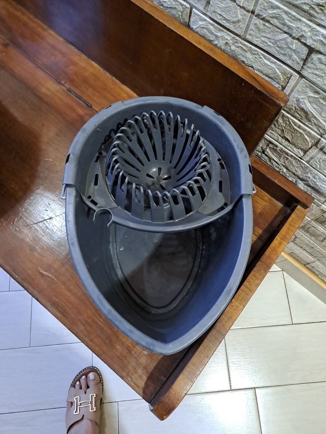 Vendo secchio Vileda per mocio, in plastica grigia. È in buone condizioni - Secchio con doppio scomparto - Cestello per centrifuga integrato - Plastica resistente