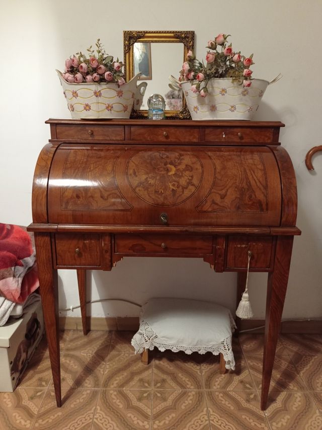 Dettagli del prodottoSecrétaire, scrittoio,di ottima fattura italiana, in legno palissandro, con decorazioni. Piano interno di pelle. cassettini e vani porta oggetti. Prezzo poco trattabile.